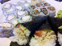Salmon Skin Roll, California Roll, & Crunchy Salmon Hand Roll: